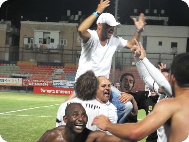 אסף רז השוער המשוחרר, אלון רבינוביץ, וצ'יקו דננבאום ביציע.