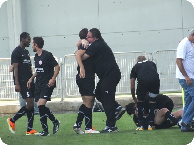 מאור סיסו ולירן חולצה אפורה, חוגגים בסיום. (שלמה אשר חיים)