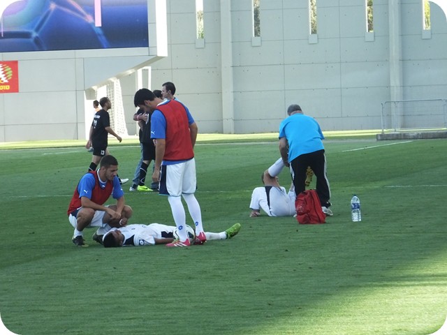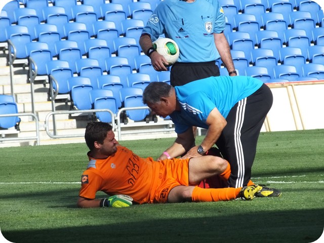 שוערה של טבריה, עדי תדמור מקבל טיפול. (שלמה אשר חיים)