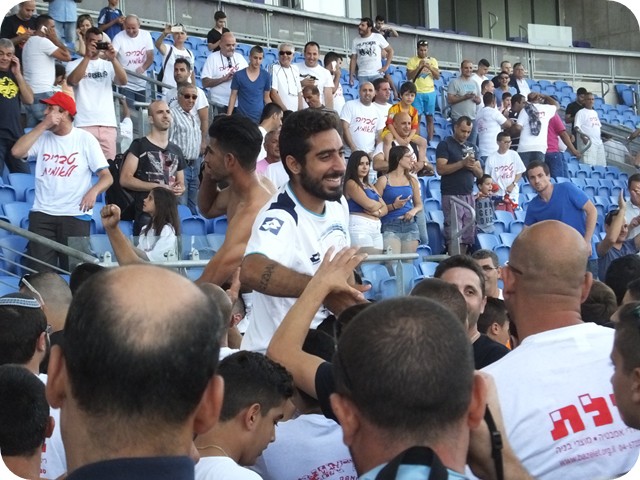 הקהל התפרץ למגרש וחגג על כר הדשא. (שלמה אשר חיים)