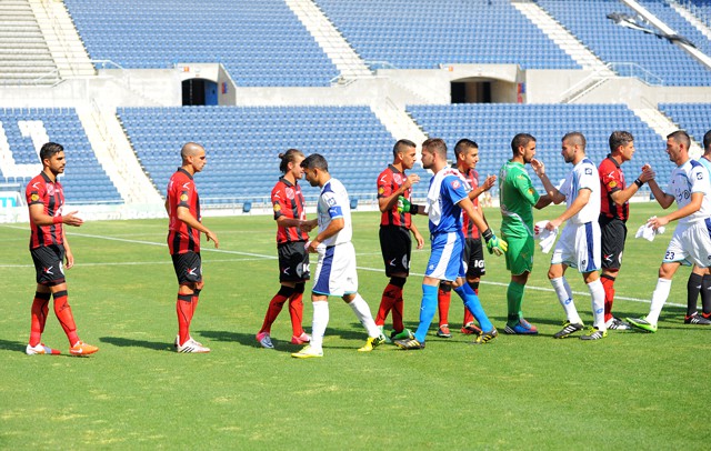 לחיצות ידיים בין השחקנים ומתחילים את המפגש המסקרן. (רמי גרידיש)