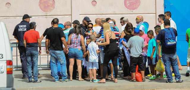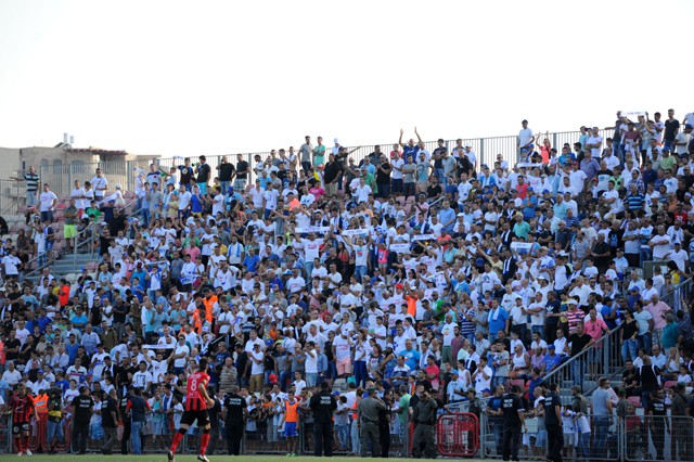 האוהדים בפתח איצטדיון גרין. (אדיר נמרוד כץ)