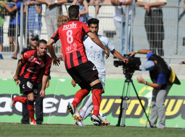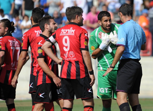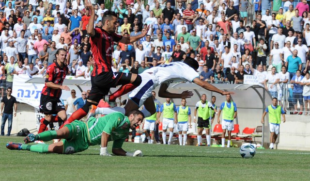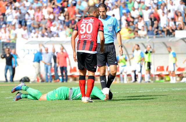 לזמי מוכשל מול שמש שמורחק מהמשחק ע"י שמאולביץ. (אדיר נמרוד כץ, רמי גרידיש)