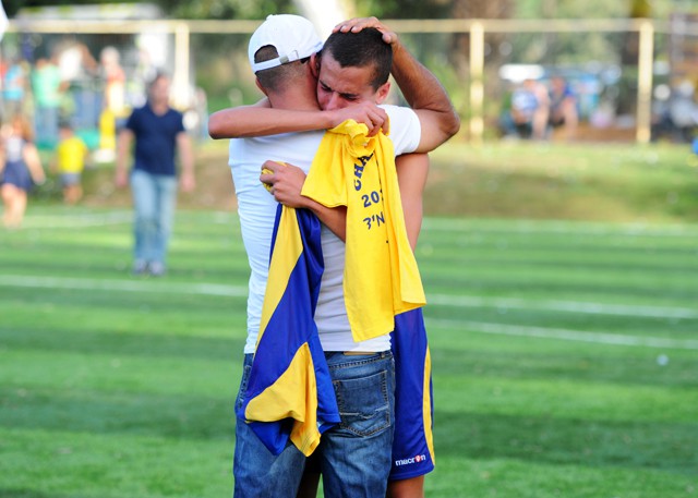 לידור סויסה מקבל חיבוק מאביו גדי שגאה בו. (רמי גרידיש)
