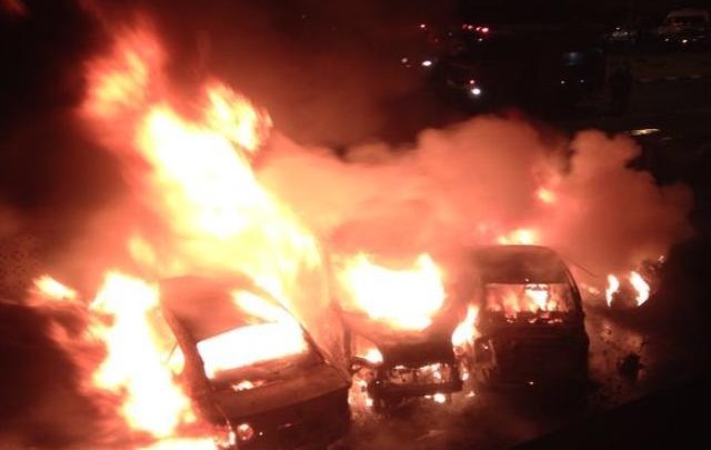 מכוניות עולות באש מחוץ לבית. "ניצלנו בנס"