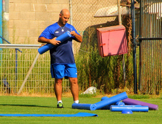 ארז בנודיס ועוזרו חיים סיטון באימון הבכורה, אתגר גדול עומד בפני הצוות המקצועי (איתמר מורז)