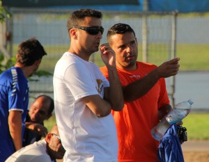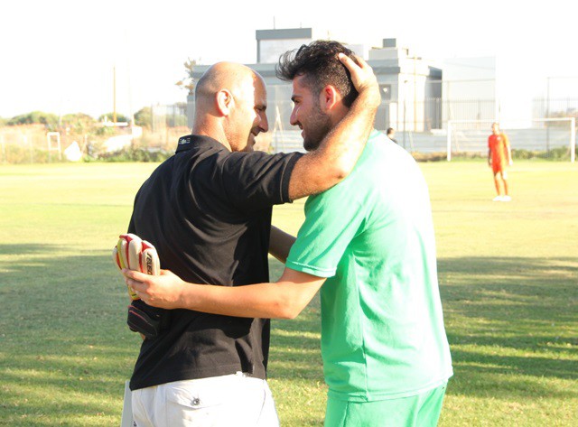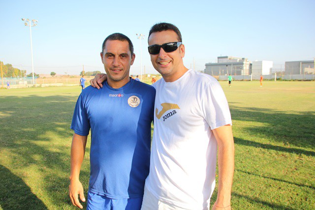 ארז ושימי בנודיס, האחד מאמנה של מכבי שעריים והשני שוער המשנה של הפועל כפר שלם (איתמר מורז)