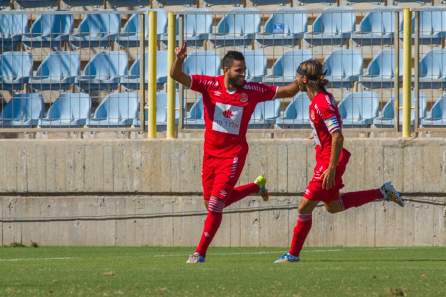 עומר מולאי חוגג את השלישי. חלוצה של מרמורק בכושר מצוין. ( צילום:רפי נחמיאס)
