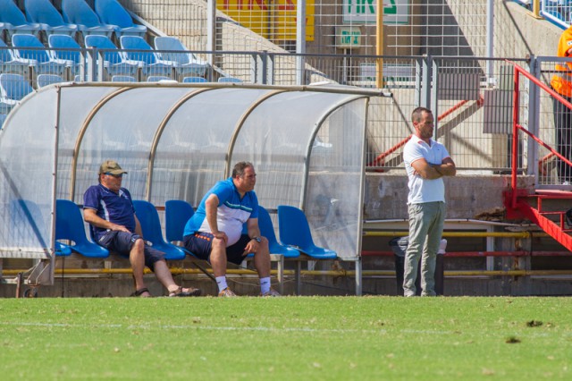 חנן עדני וחיים סירוטקין מאמנה של ביתר כפר סבא. (צילום:רפי נחמיאס)