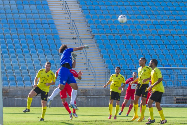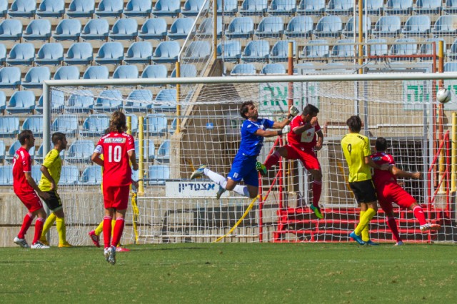 עומר מולאי נוגח את הראשון של קבוצתו. ( צילום:רפי נחמיאס)