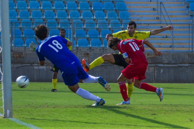 חסן מקדים את ההגנה וכובש את הרביעי. ( ציום: רפי נחמיאס)