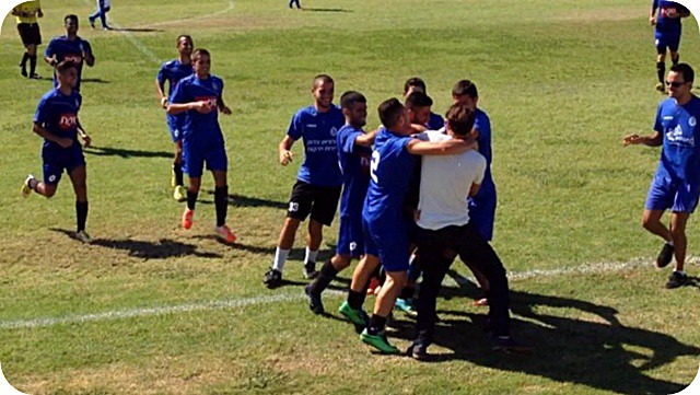 אדם לם, כובש שער הניצחון שמעניק 3 נקודות לקבוצתו. (צילום: יח"צ)