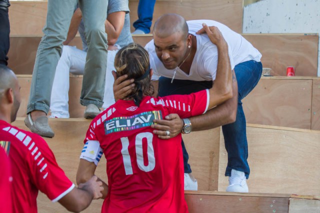 חסן מקבל חיבוק מהבעלים אייל גולן. ( צילום: רפי נחמיאס)