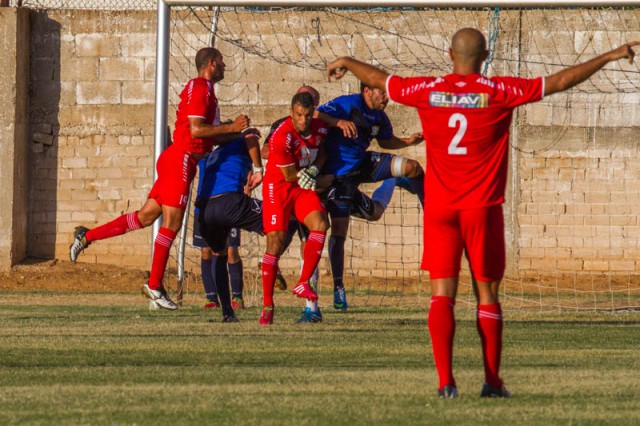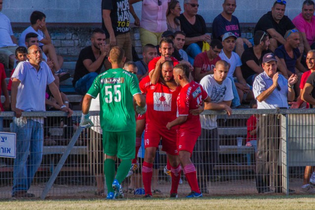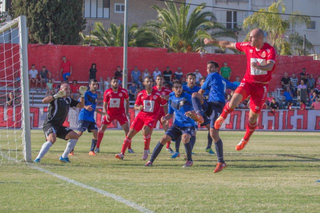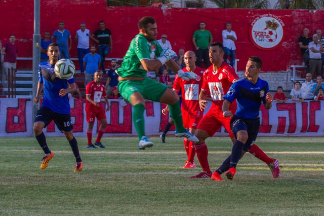 רגב וולק נוגח ומעלה את מרמורק ליתרון. ( צילום: רפי נחמיאס)