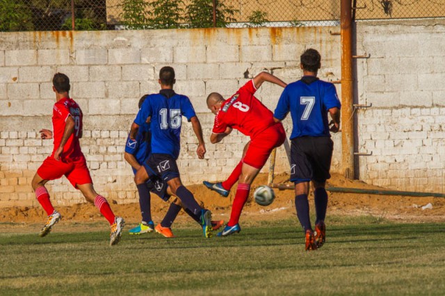 קריספיס אורב לכדור, תמיר פור מרחיק את הסכנה. ( צילום: רפי נחמיאס)