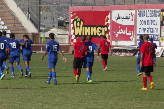 רבע שעה לסיום, כדור עומק של חסן מנאע לכיוון עומר סבע שמשתלט על הכדור ובועט לרשת, אך השופט שחר רחמיאן פסל את השער בטענה לנגיעת יד. המאמן אימן חלאילה שאל את השופט איך הוא ראה את נגיעת היד שהוא רחוק יותר מ- 10 מטרים מהאירוע והשופט החליט להרחיק את המאמן שעלה ליציע.