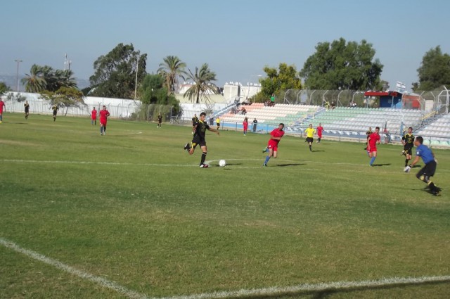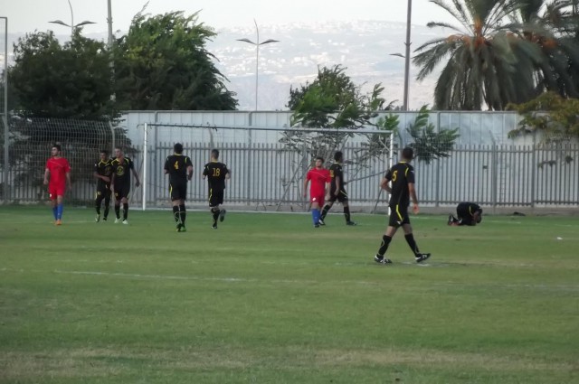 דקה 30 והייב סואעד הצעיר משחרר בעיטה, השוער אמין עראידה הודף לרגלו של מוחמד אבו גלייל אך נאיף סלאמה הבלם מציל מקוו השער. דקה 45 רגע לפני היציאה להפסקה, אייל הזימה בעט טוב אך השוער מוסטפא נדאף ירד לכדור וקלט.