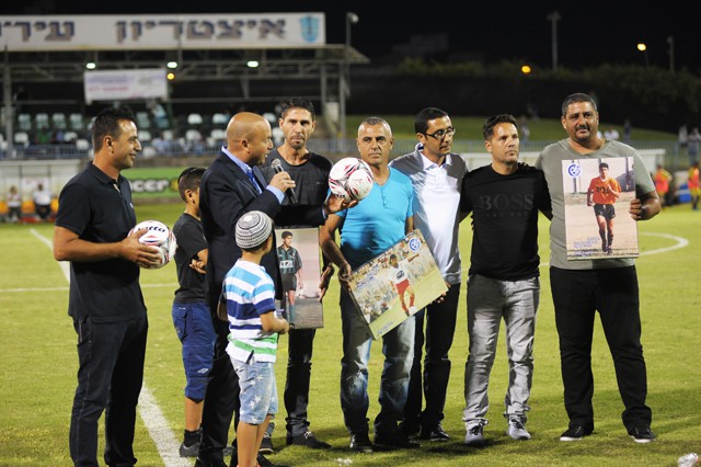 במחצית המשחק, העניקו הוקרה וכבוד לשחקני עבר באשקלון. שאפו! (צילום: רמי גרידיש)