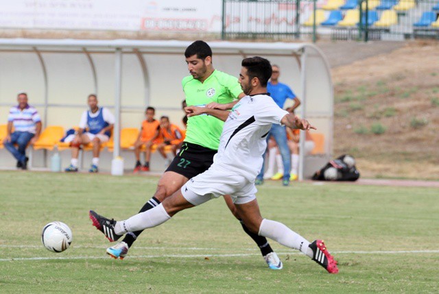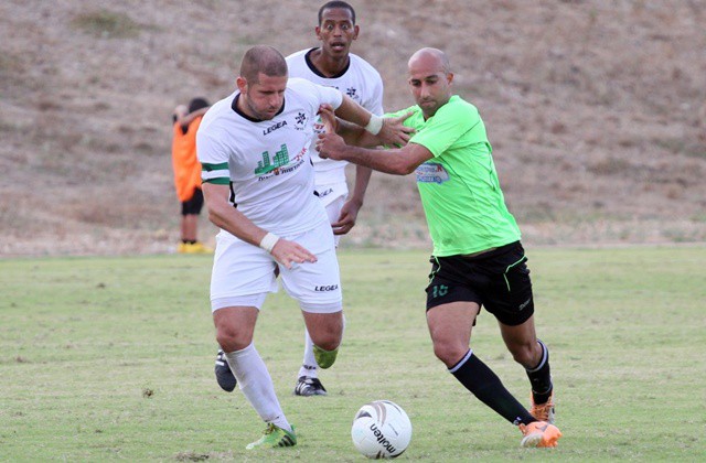 חיים כנפו בלבן מול אייל שן מעמישב בירוק. (צילום: רועי אסרף)