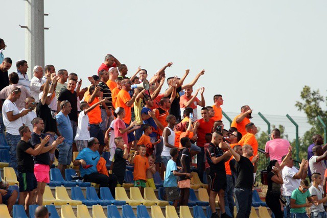 הקהל הכתום של מלאכי, מעודד ללא הפסקה. הלוואי וישארו בליגה. (צילוםף רועי אסרף)