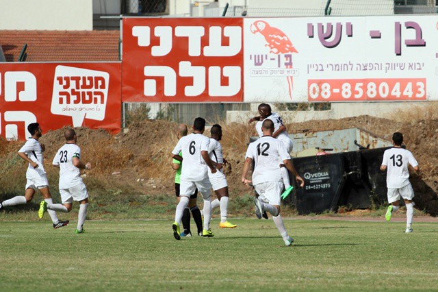 שחקני מלאכי חוגגים את הראשון! (צילום: רועי אסרף)
