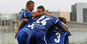 שחקני בני לוד, חוגגים ניצחוון חשוב. (באדיבות one)
