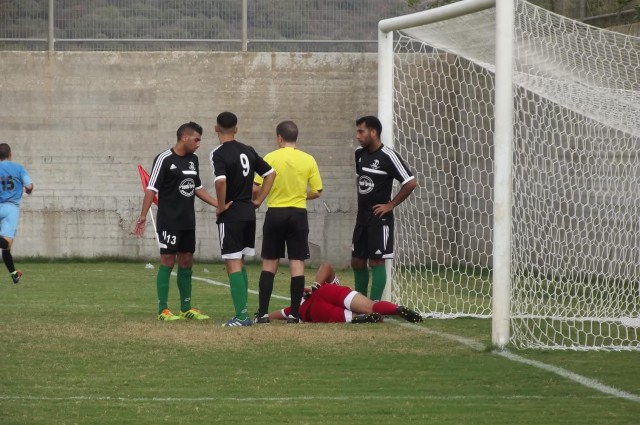 דקה 80 אלון זיו הבלם הותיק ממכבי עכו, משחרר בעיטה אדירה למשקוף השער הכדור חזר למגרש. השוער סאפי עיסאוי זינק הציל ונפגע. בסיום 0-0 בין שתי הקבוצות במשחר מאכזב ובעיקר מדכא.