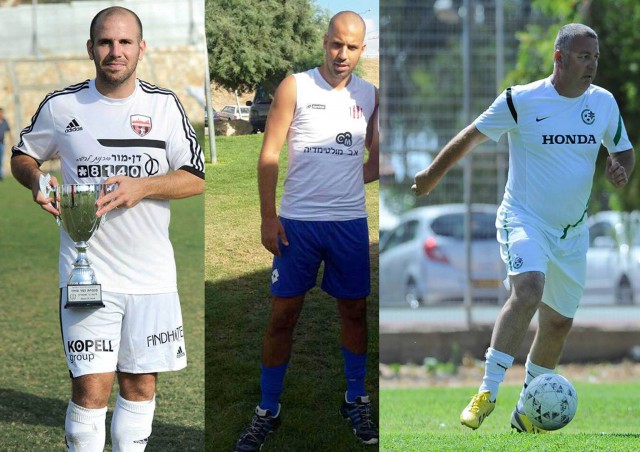 שמעון רביבו עושה כושר במדי ותיקי חוף הכרמל בגביע שווגר. (אדיר נמרוד כץ)