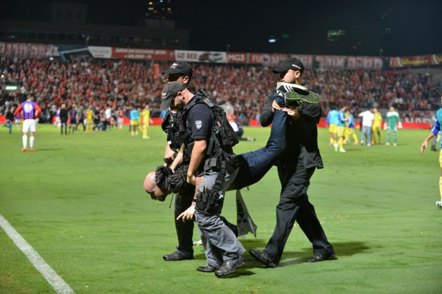 אוהד מכבי תל אביב מפונה על ידי השיטור מהמגרש (אלעד ירקון)