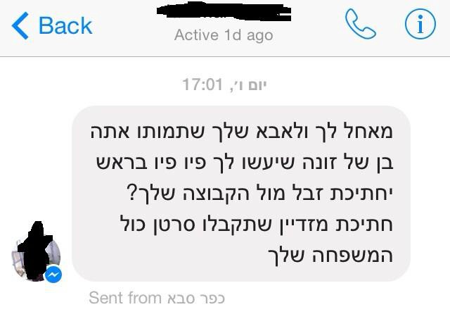 לפניכם, דוגמה לאחת מיני הודעות רבות שקיבל ומקבל אז'ובל/ למרות שהיא מכילה מילים הקשות, בחרנו את אחת מההודעות העדינות יותר שקיבל לאחר המשחק: