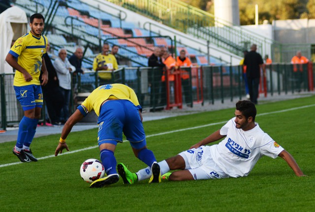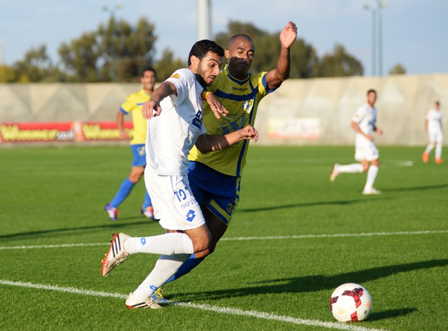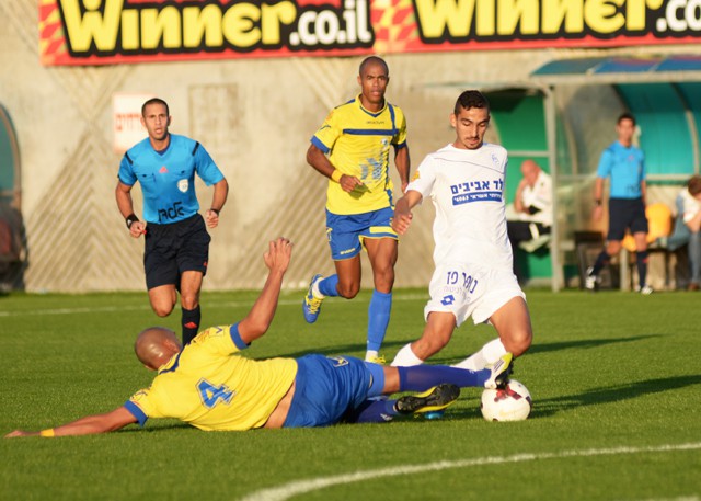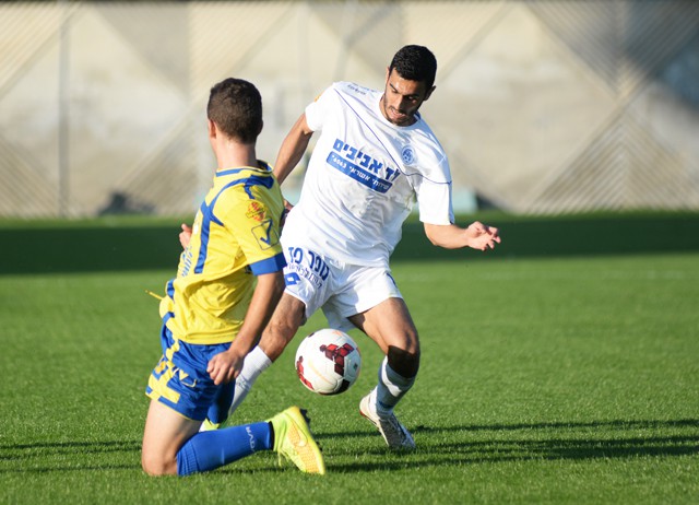 ניבלדו ויוסי שבחון במאבק על הכדור (רמי גרידיש)