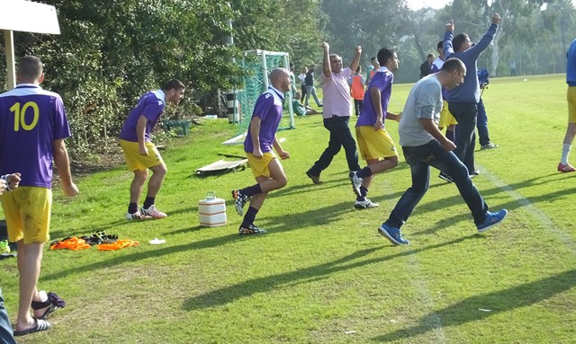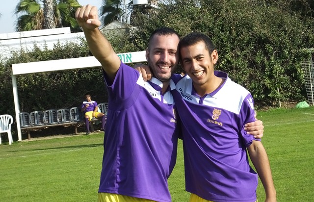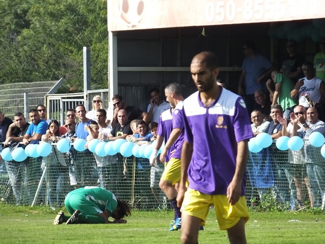 מוסא רץ לאוהדי הקבוצה, איזה גול. ספיר צלביאנסקי, בהלם. (צילום: אביחי חיים)