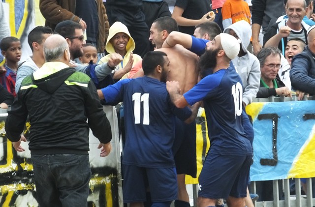 דקה לאחר מכן, מאור מרציאנו מוצא בדיוק מופלא את רגלו של אמיר עזרא שדוחק מקרוב את השני לטובת השיכון. אמיר לא יודע את נפשו ברגעים הללו, מוריד את החולצה ורץ לחגוג עם אוהדי הקבוצה. בסיום החגיגה, מקבל את הצהוב המוצדק משופט המשחק באהבה גדולה.