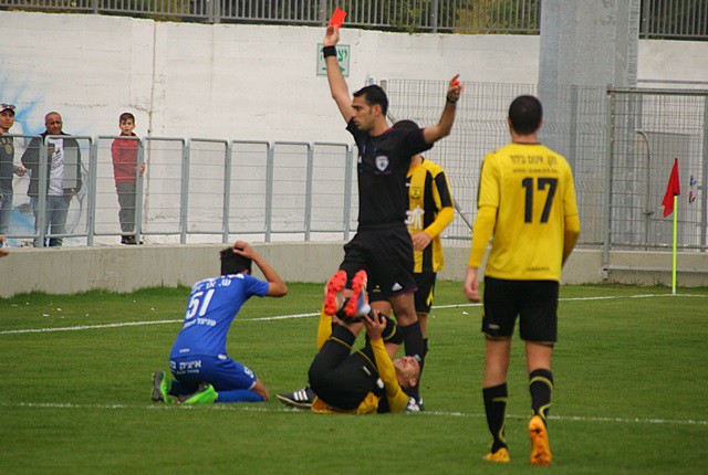 תום מדהלה רואה את הכרטיס האדום (צילום: איתמר מורז)