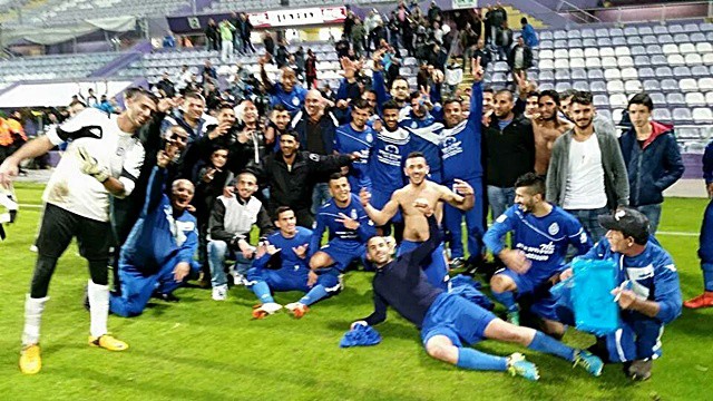 אסי גומא במרכז, שמח על הניצחון הגדול בגביע. (צילום: אורי דוד)