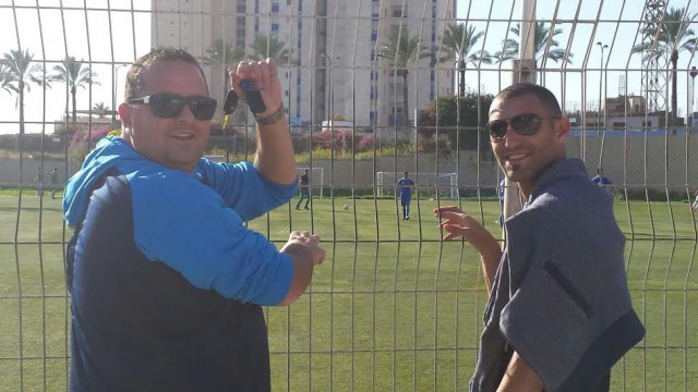 רן בן שמעון ועומר גולן, עושים סקאוטינג על אולגה לקראת משחק הגביע. (צילום: יח"צ מ.ס. גבעת אולגה)