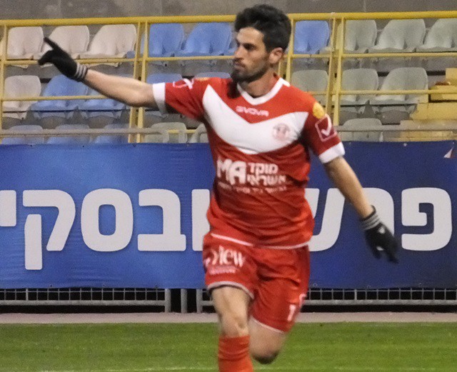 נבו מזרחי כובש את שער הניצחון של הירושלמים. (צילום: אביחי חיים)