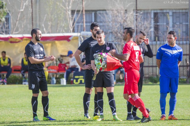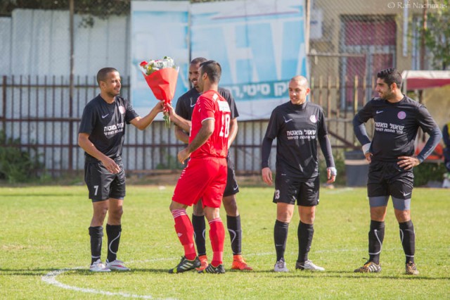 מאור חלבי מעניק זר פרחים לעומר נעים. ( צילום:רפי נחמיאס)
