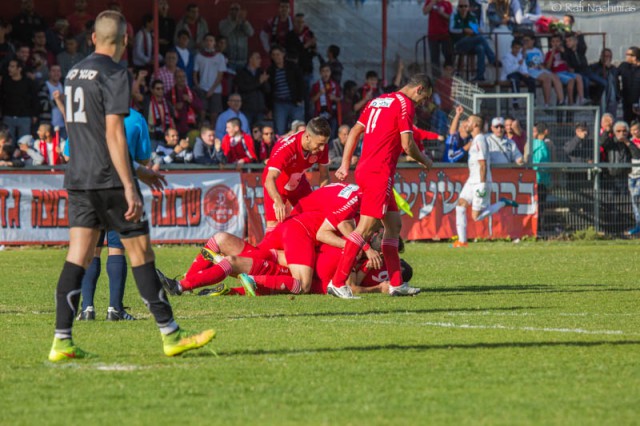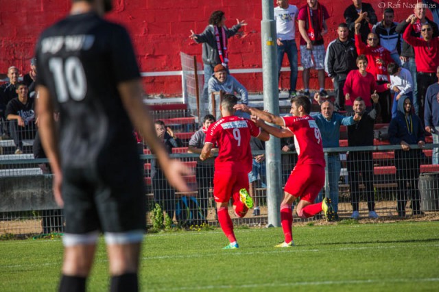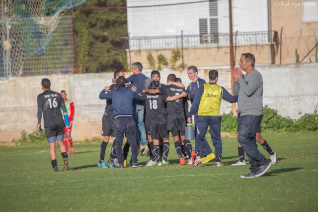 שחקני אזור חוגגים. ( צילום:רפי נחמיאס)