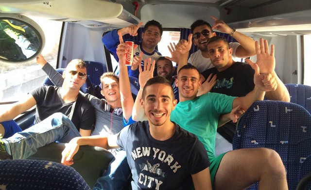 שחקני בני אילת, שמחים בדרכם לליגה א'. (יח"צ)