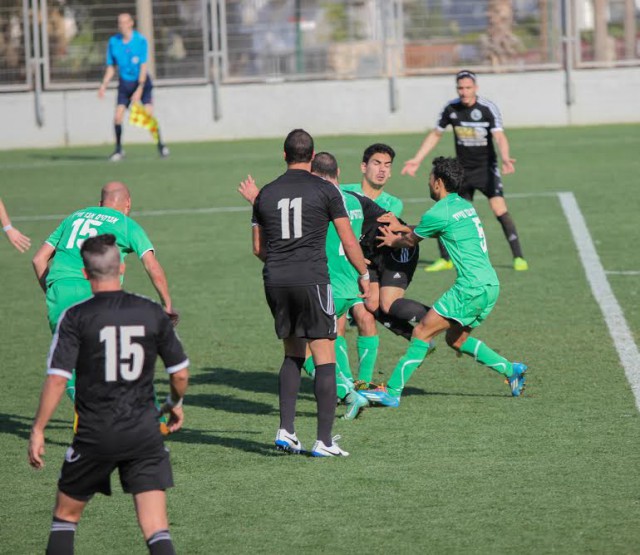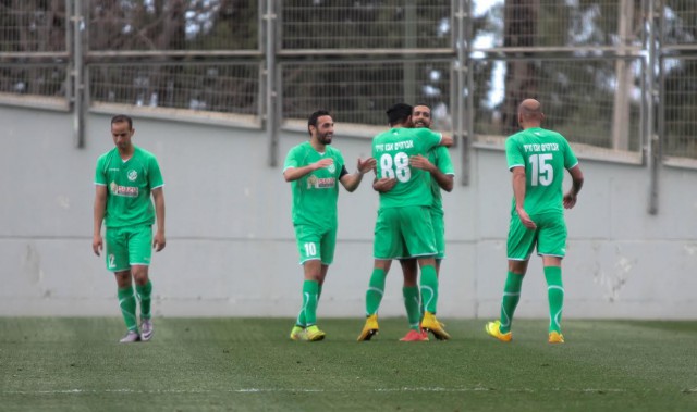 חגיגות בדליה לאחר כיבוש השער המפתיע. (צילום: מאור אלקסלסי)