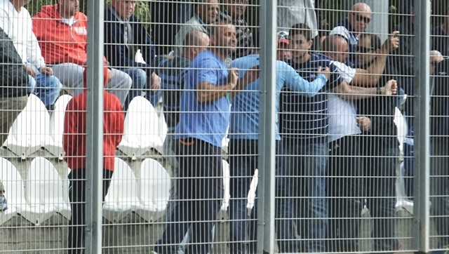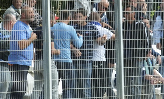 חצי שעה מפתיחת המשחק, התפתחה מהומה ביציע כאשר אביו ואחיו של רווה אייזנקוט (שחקנה של עמישב), התעמתו עם אוהדי מכבי יפו ביציע המעורב. המשחק הופסק למספר דקות, מכיוון שרווה אייזנקוט איבד את העשתונות ולא יכול היה לעבור על כך לסדר היום. רווה הסביר: "איזה בן אדם הגיוני רואה ש[אביו ואחיו מתעמתים עם אוהדים, והוא ימשיך לשחק כאילו דבר לא קרה? מזל שבמשחק כזה שלחו שופט כל כך בכיר וכל כך טוב ולכן המשחק התנהל בצורה הטובה ביותר. לא פחדתי להיות מורחק, כי ברגע שזה נוגע למשפחה שלי אני לא יכול להמשיך. שי מוטאי הגיע אליי לאחר מכן והתנצל על המקרה, התחבקנו וסגרנו את העניין". בסיום המהומה, אביו של רווה ואחיו, הגיעו על מנת לשמור עליהם "ליציע הכבוד" מאחורי השערים יחד עם אנשי עמישב.