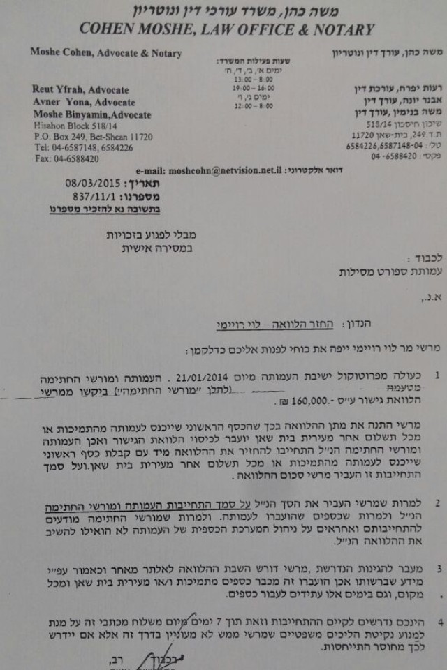 קבלן דורש כ- 350 אלף שקל מהפועל בית שאן