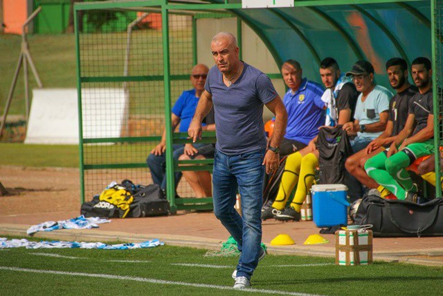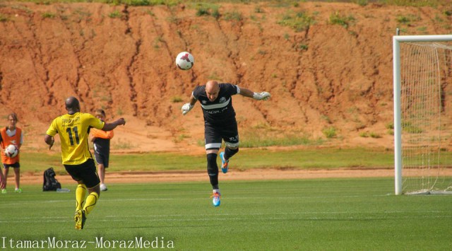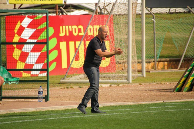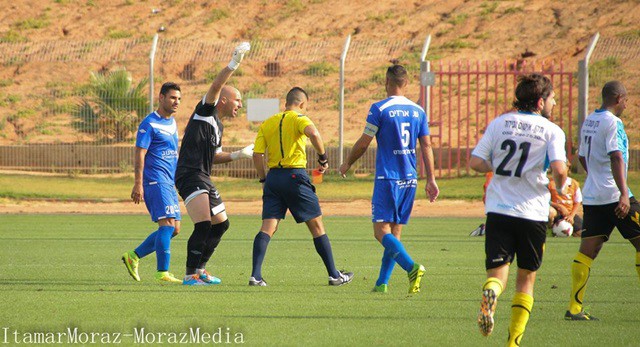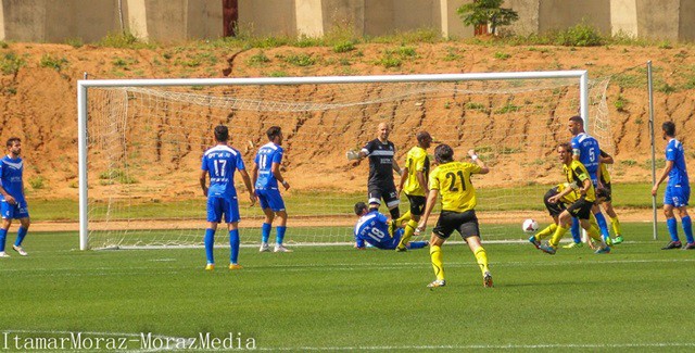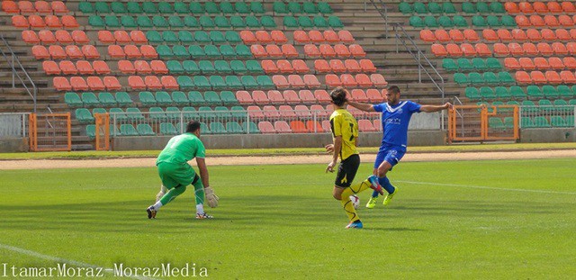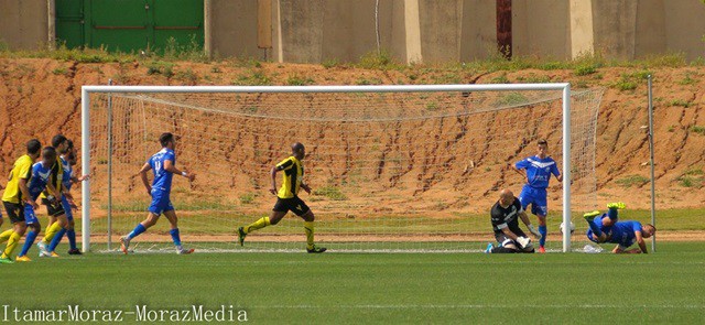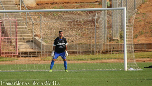 לאחר ששעריים כבר ביצעה את שלושת חילופיה, קובי נחמיאס לבש את אפודת השוער ונכנס אל השער לדקות הסיום. (צילום: איתמר מורז)