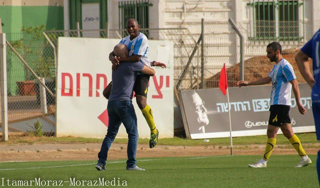 דוס סנטוס חוגג את כיבוש השער שהכריע את המשחק (צילום: איתמר מורז)