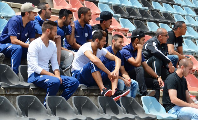 שחקני יפו ביציע, עשו את העבודה מול הוד השרון. (מני בן ארי)