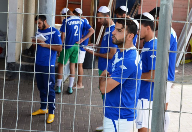אחווה לפני המשחק, בשתי הקבוצות. (מני בן ארי)