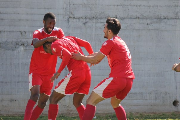 שחקני חדרה חוגגים. (צילום: ט.ר. צילום)