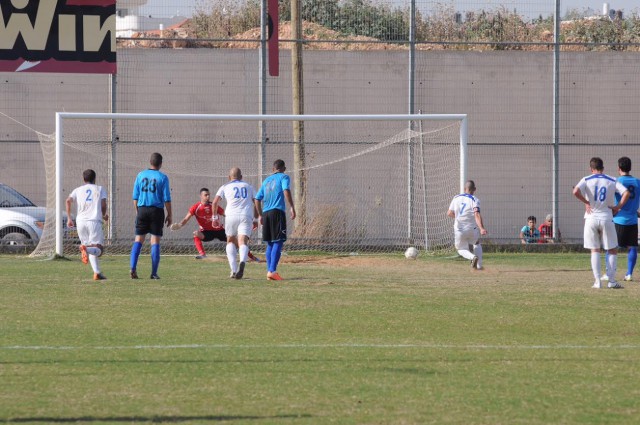 ארז ללוז בעט היטב את הראשון לזכות הקריה, 1 – 1. רצבי בעט את השני לזכות כפר קאסם, אבל קרטה קרא מראש את הפינה והדף היטב.