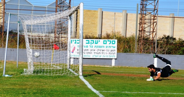 עידן חג'ג, מסיים את הכדור ברשת. (מני בן ארי)